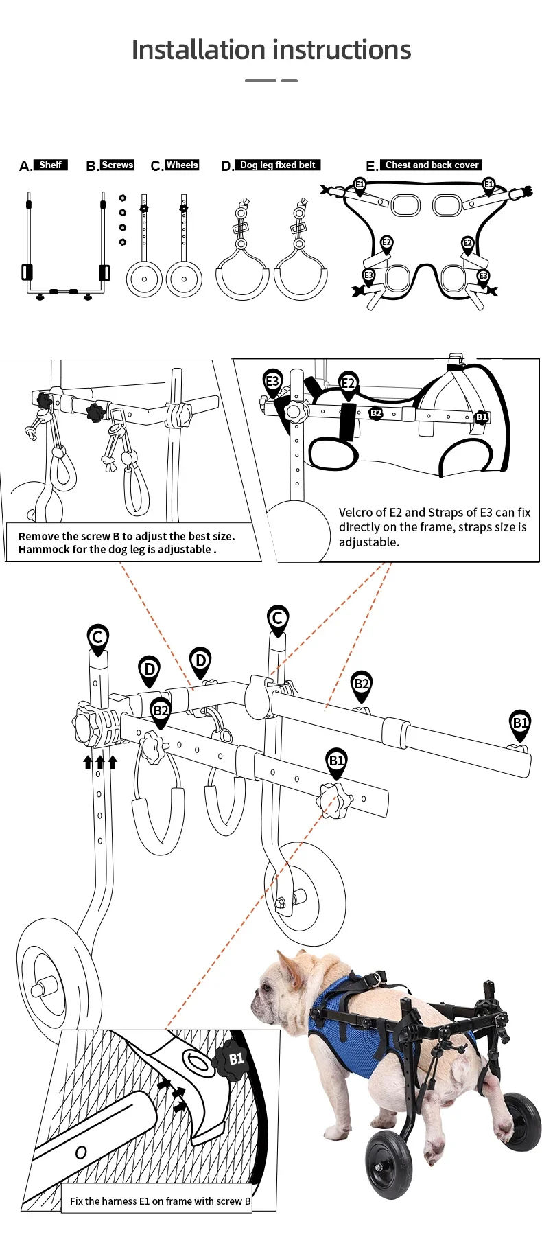 ペット用車椅子カート 調節可能なペット用移動補助具 車輪付き 障害のある猫や犬のリハビリテーション 歩行補助具 トロール