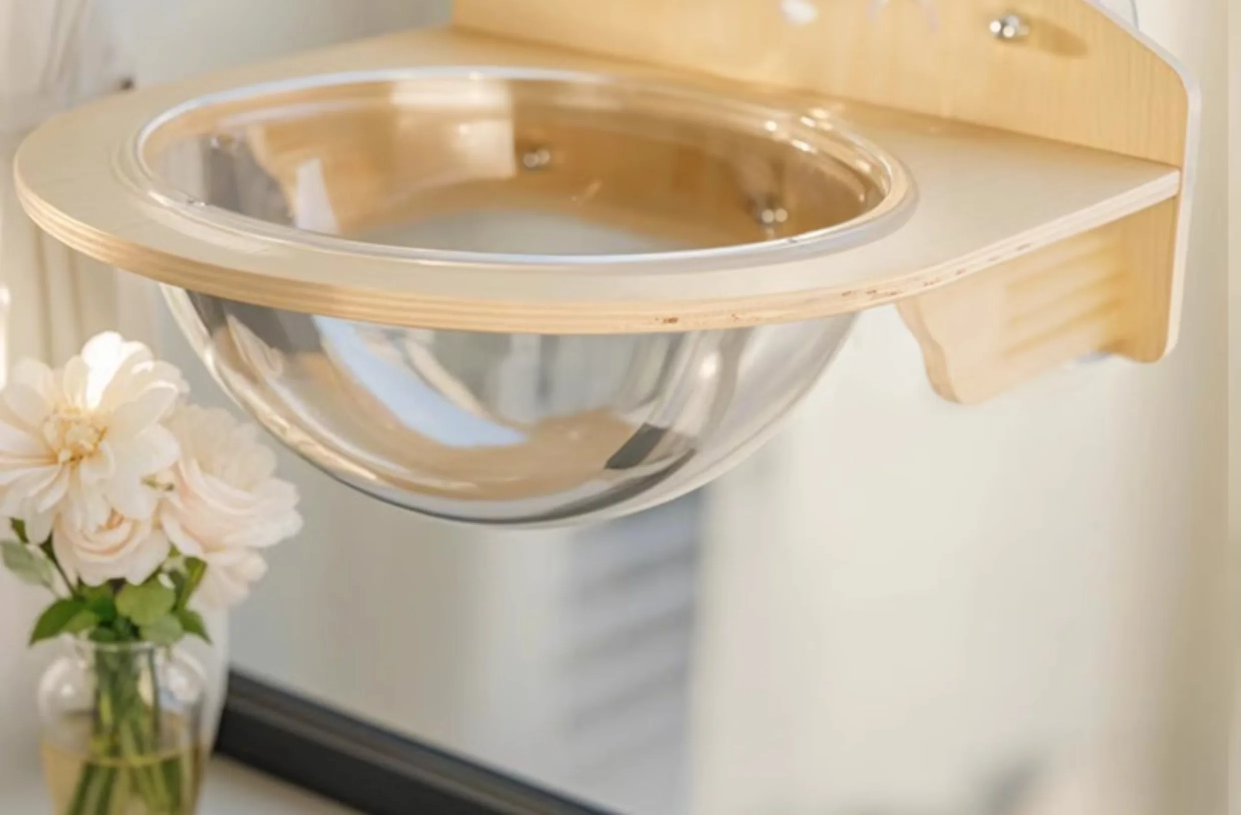 透明なガラスで作られたこの猫用ベッドは、ペットが太陽を楽しみながら周囲の様子をはっきりと見渡すことができます。