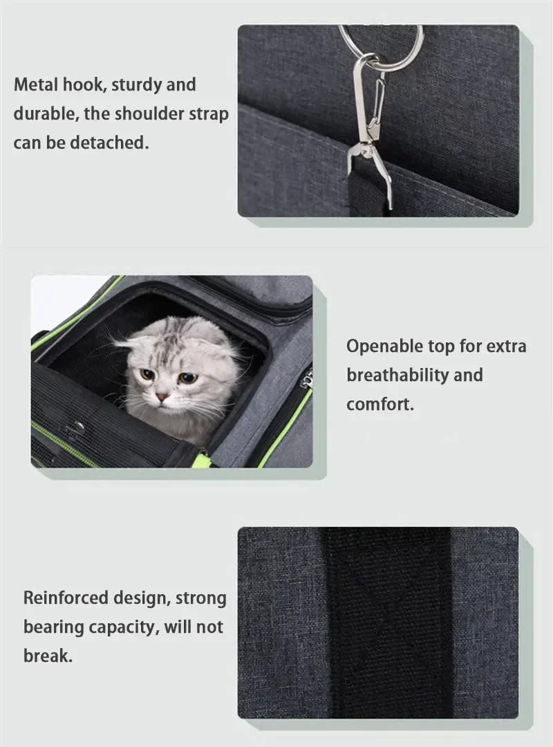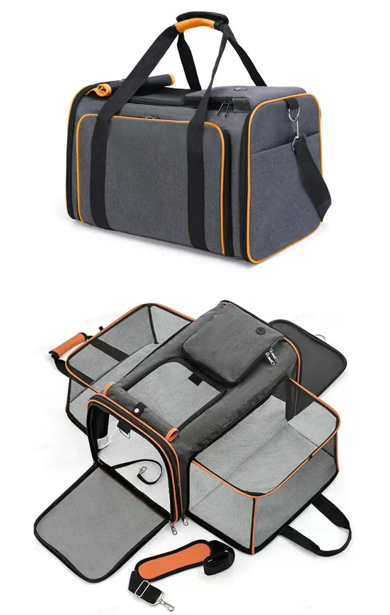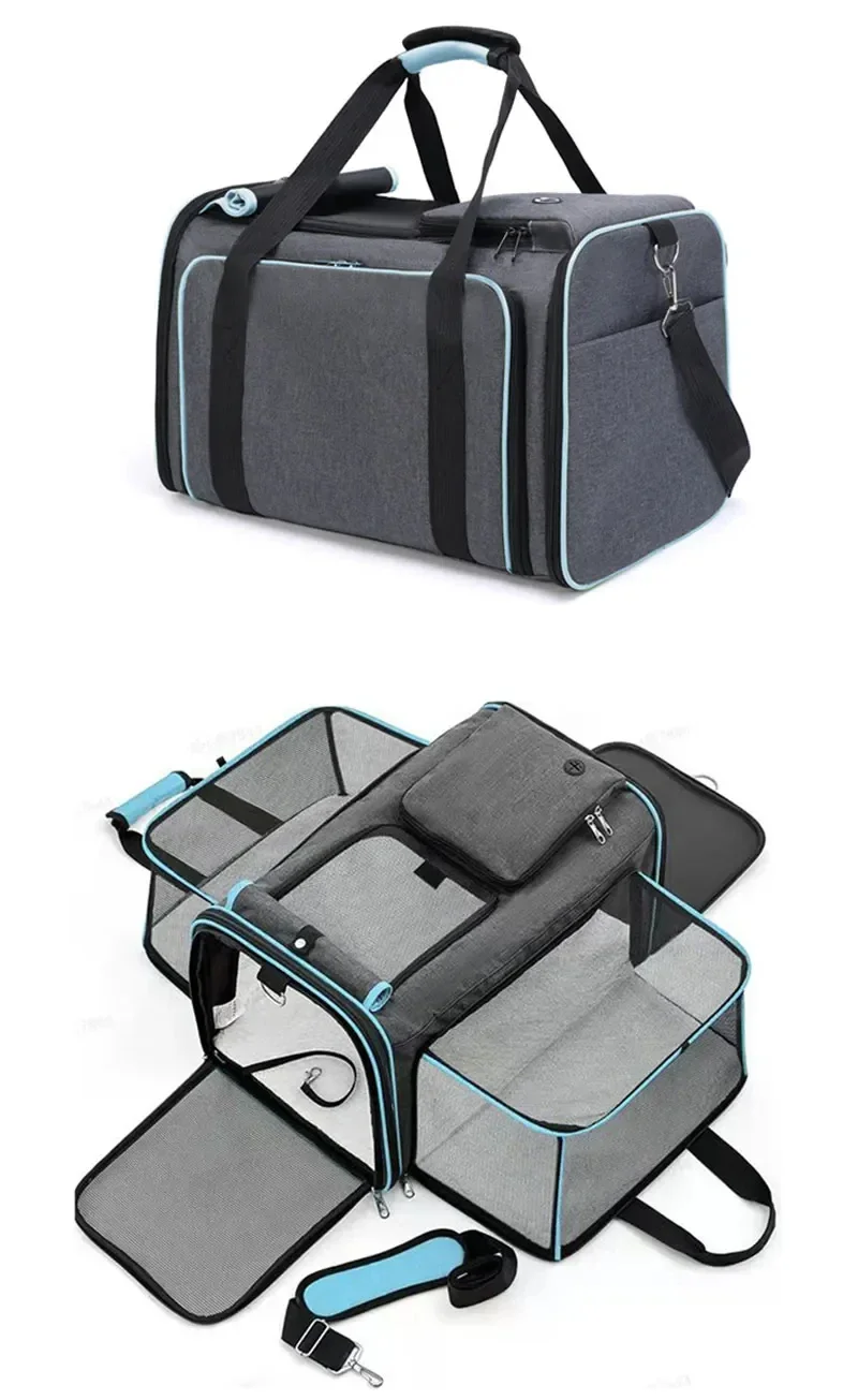 2025 New Large Capacity Carrier Cat Pet Airlines Approved Reflective Tape Cat Travel Bag Expandable Foldable Soft Dog Carrier